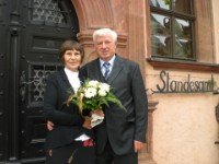 Hannelore mit einem Blumenstrauß und Frank im Anzug, das muss ein besonderer Tag sein. Vor 50 Jahren hat die Eheschließung hier stattgefunden, sehr leise, ohne Gäste und großes Tramborium.